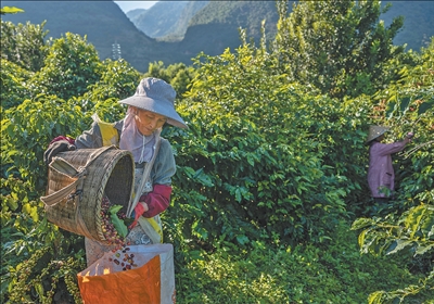 云南省保山市日前迎来咖啡收获季,当地咖农趁晴好天气采摘、加工咖啡果。