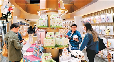 顾客在泡泡玛特英国伦敦牛津街店内选购。新华社记者 李 颖摄