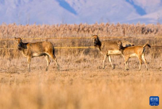 青铜峡库区湿地自然保护区总面积174.93平方公里,是宁夏最大的黄河滩涂类型湿地。2024年9月底,35头麋鹿落户青铜峡库区湿地自然保护区,经过一个月适应期后被野放在200余亩的围栏内。目前,随着6只麋鹿幼崽的诞生,当地麋鹿种群繁育工作迈入新阶段,放归区域从200余亩扩展至3000余亩,保护工作也从迁地扩繁转向野化放归,开启了黄河流域宁夏段生物多样性保护的新篇章。